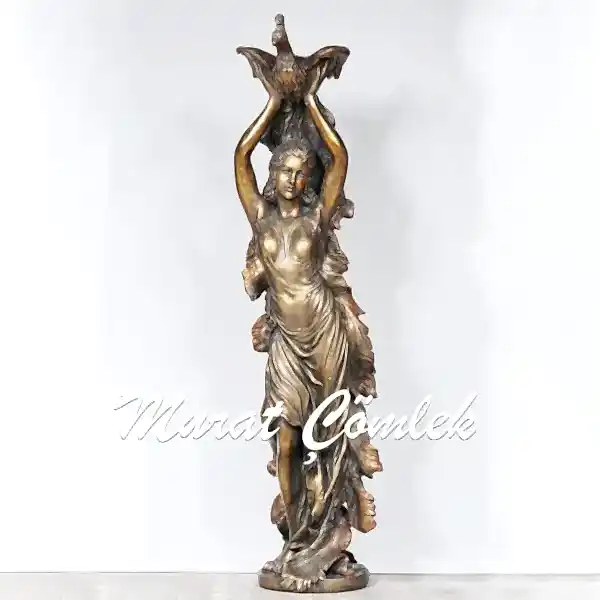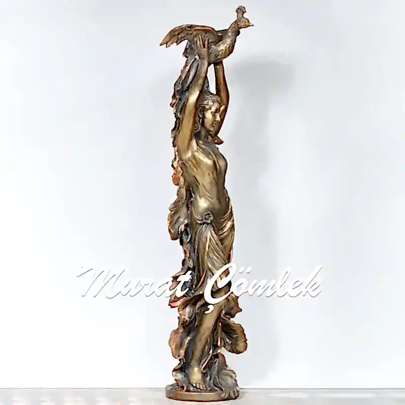 Polyester Tavus Kuşlu Kadın Heykeli 160cm X 40cm