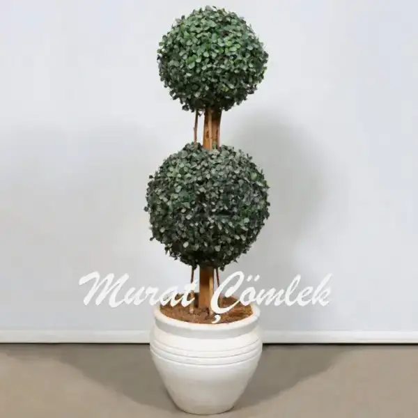 Doğal Ahşap Yapay İkili Şimşir Ağaçı 170cm X 30cm